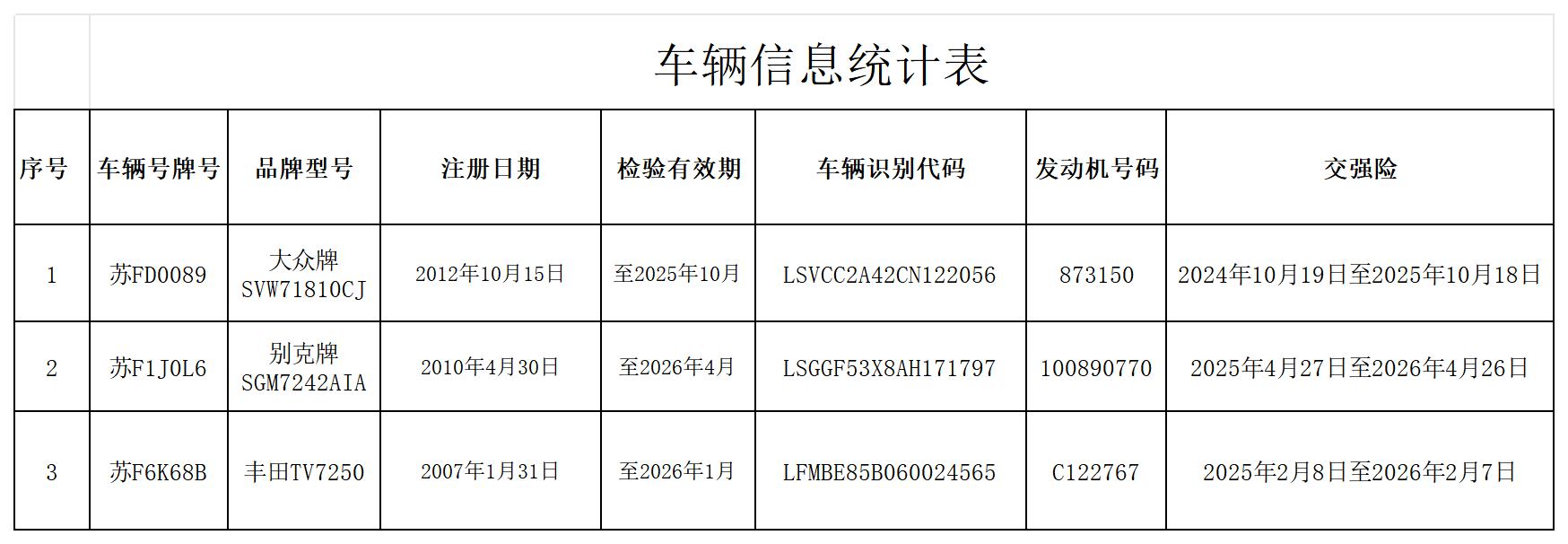 标的①:苏FD0089大众牌小型轿车; 标的②:苏F1J0L6别克牌小型轿车; 标的③:苏F6K68B丰田牌小型轿车。 |